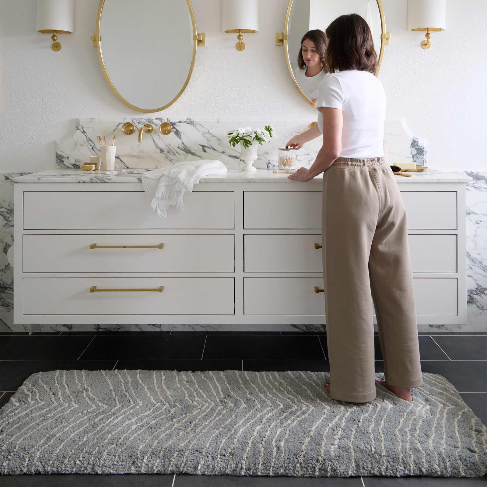 Bath mats, reimagined. Extra fluffy & plush, our collection of handmade cotton bath rugs are designed to bring a fresh new perspective to your bathroom. Available with a separate memory foam pad for unmatched comfort, making it extra supportive for your knees while bathing little ones, and oh-so-comfortable while stepping out of the bath or shower. Available in standard and runner sizes to fit at your sink, shower or tub.