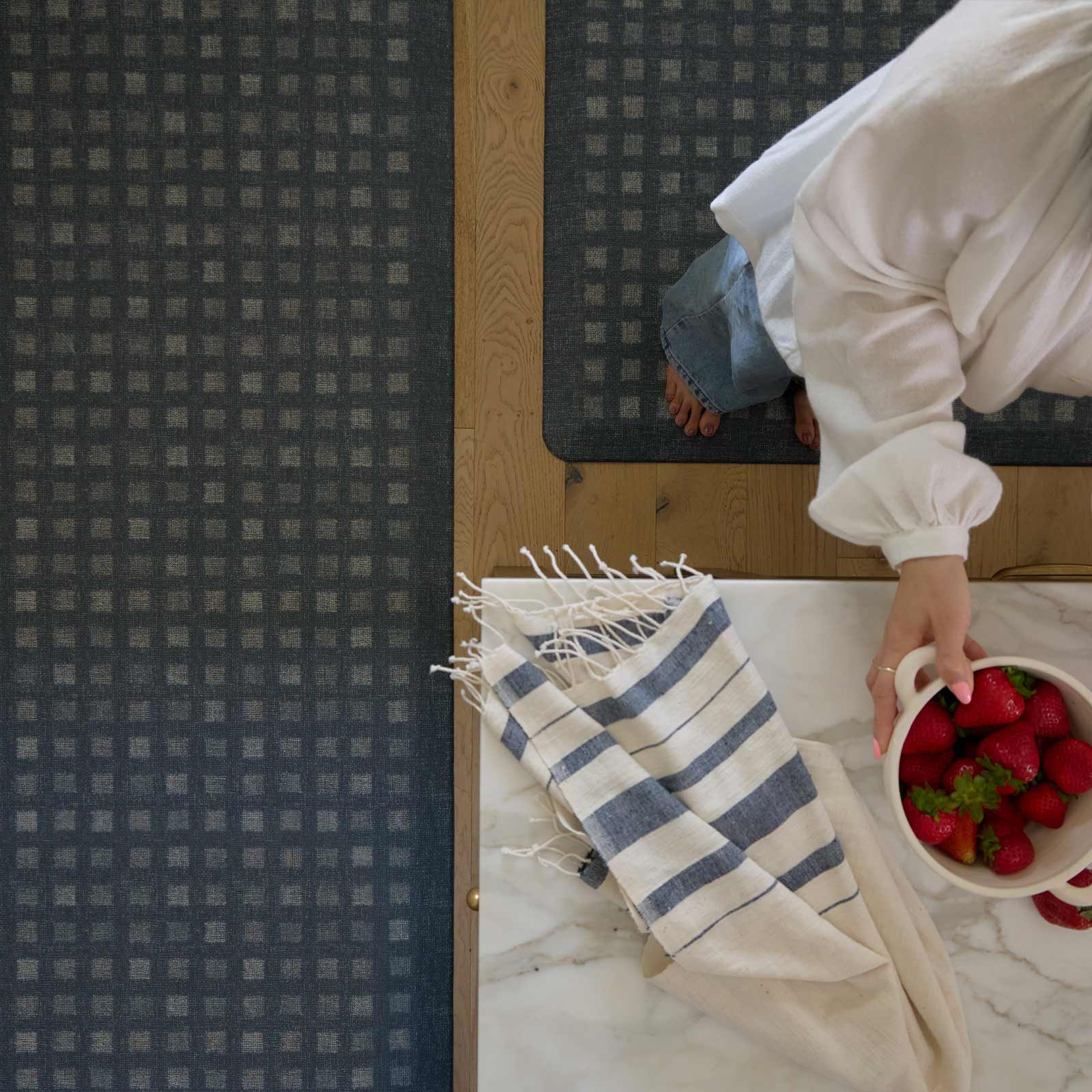 Clean lines, clean floors, all-day comfort. Levi’s tidy grid of small squares adds subtle texture and quiet structure to your space — like your favorite tailored shirt, but underfoot. Crafted with anti-fatigue foam that cushions every step, it’s made to support you through long hours in the kitchen, office, or wherever you stand most.