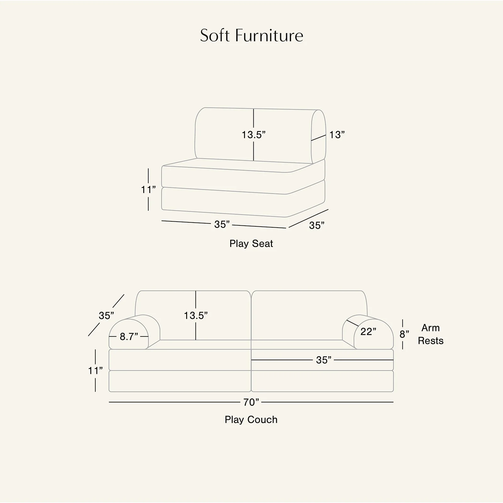 The Seat is the heart of your new modular couch. Soft yet sturdy foam supports hours of play, lounging, and imaginative fun. The Seat includes one foldable base & one backrest, each with a removable and machine-washable fabric cover. The base layer unfolds to create a flat surface, perfect for lounging or turning into a fort. Ideal for playrooms, living rooms, or anywhere your family gathers. Add a Waterproof Cover for added protection.